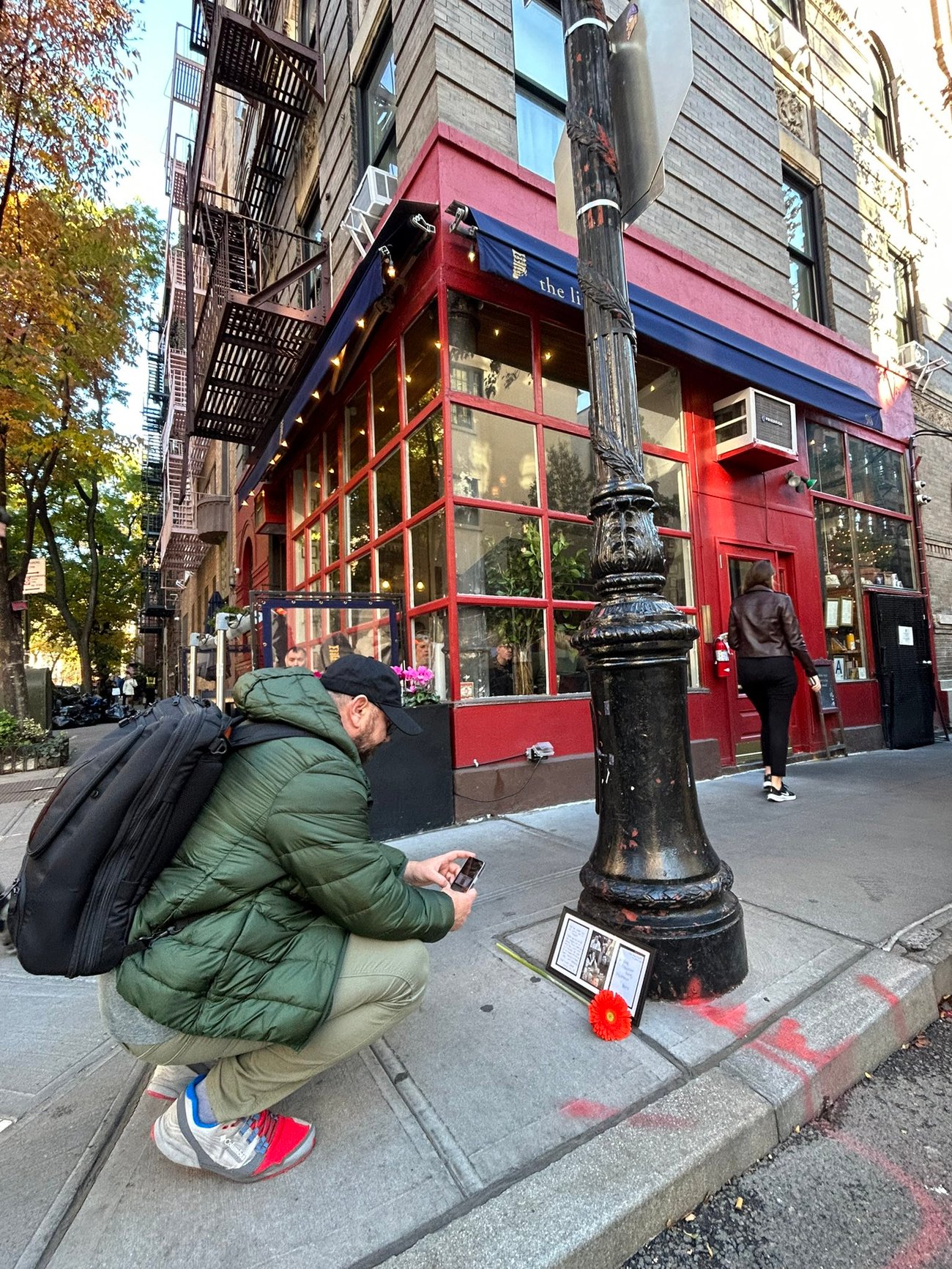 Seguidores de la serie Friends recuerdan a Matthew Perry en el edificio de apartamentos en West Village, Nueva York, donde se filmó la serie en los ’90 (Foto @MiraPantic en X). |
