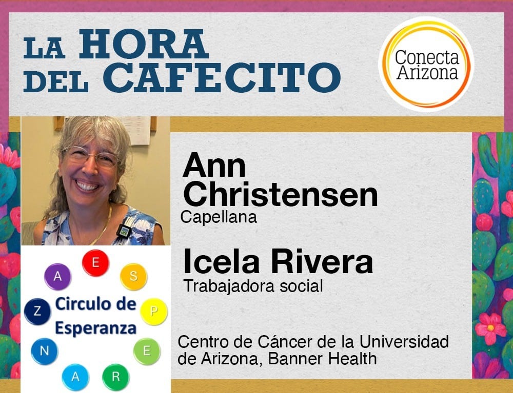 ➡️ Un grupo de apoyo gratuito en español para pacientes con cualquier tipo de cáncer y sus familiares se encuentra disponible, en Arizona, en el Centro de Cáncer de la Universidad de Arizona – Banner Health. Se llama Círculo de Esperanza y ofrece apoyo y acompañamiento a las personas enfermas y a sus cuidadores a lo largo de todo el proceso de la enfermedad, desde el momento en que reciben el diagnóstico. “Círculo de Esperanza es un grupo de apoyo para pacientes, no es una terapia. El grupo de apoyo es una reunión más informal de paciente a paciente”, señaló Icela Rivera, trabajadora social y facilitadora, en declaraciones