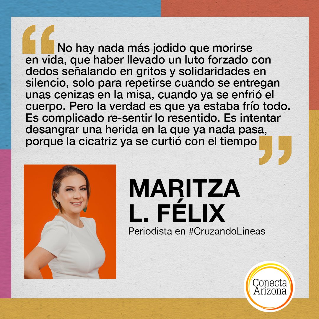 ➡️ Nuestra directora Maritza L. Félix realiza una reflexión personal: "Los puntos suspensivos me gustan, quizá demasiado. Es como si pudiera ponerle un 'ahorita', un 'espérame tantito' o un toque de suspenso a la vida. Es dejar una idea colgando y tener chance de sopesar si la salvamos o la sentenciamos a muerte. Ahora que lo pienso, tal vez es que me cuesta mucho pensar en lo definitivo, en lo que se acaba, en el temido punto final. Mi abuela murió. No hay final más definitivo que ese. Su partida me sacudió como ese portazo seco en un libro que había dejado abierto, empolvándose con los recuerdos. Pienso en las muchas páginas de